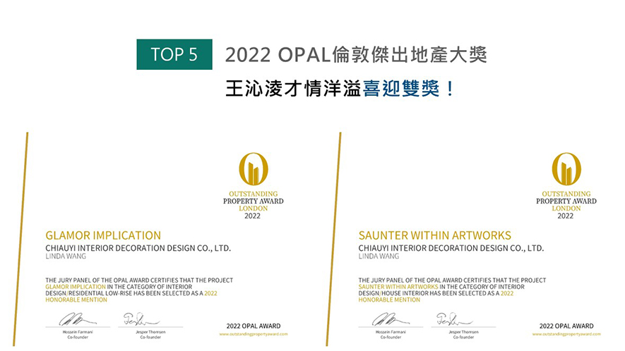 跨足建築工程及室內設計領域,喬藝設計 王沁淩 設計總監 立足業界二十餘年來,皆以多元專業培養的細膩巧思精琢場域細節、規劃實用機能,輔以自身獨到的美學品味,搭建一幢幢實現客戶需求的精美宅邸,深受多方業主的好評;現在,就讓我們一同回首她這一年來的耀眼成就!